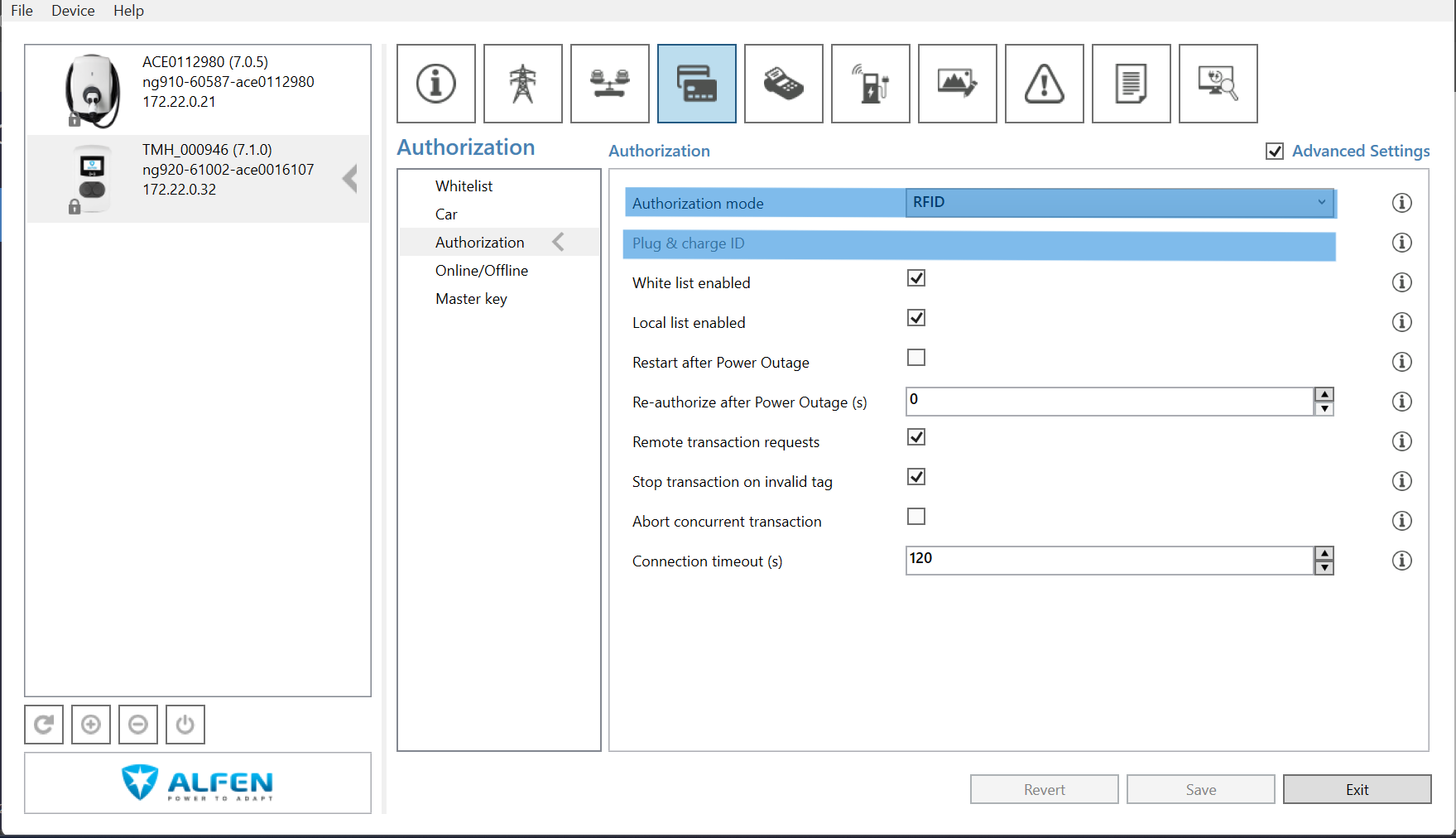 Autocharge/Freies Laden EinstellungenWenn diese Funktion aktiv ist, startet die Ladestation die Transaktion entweder mit dem, in der Ladestation vordefinierten, Identifier (Plug&Charge), oder mit der EV MAC-Adresse.