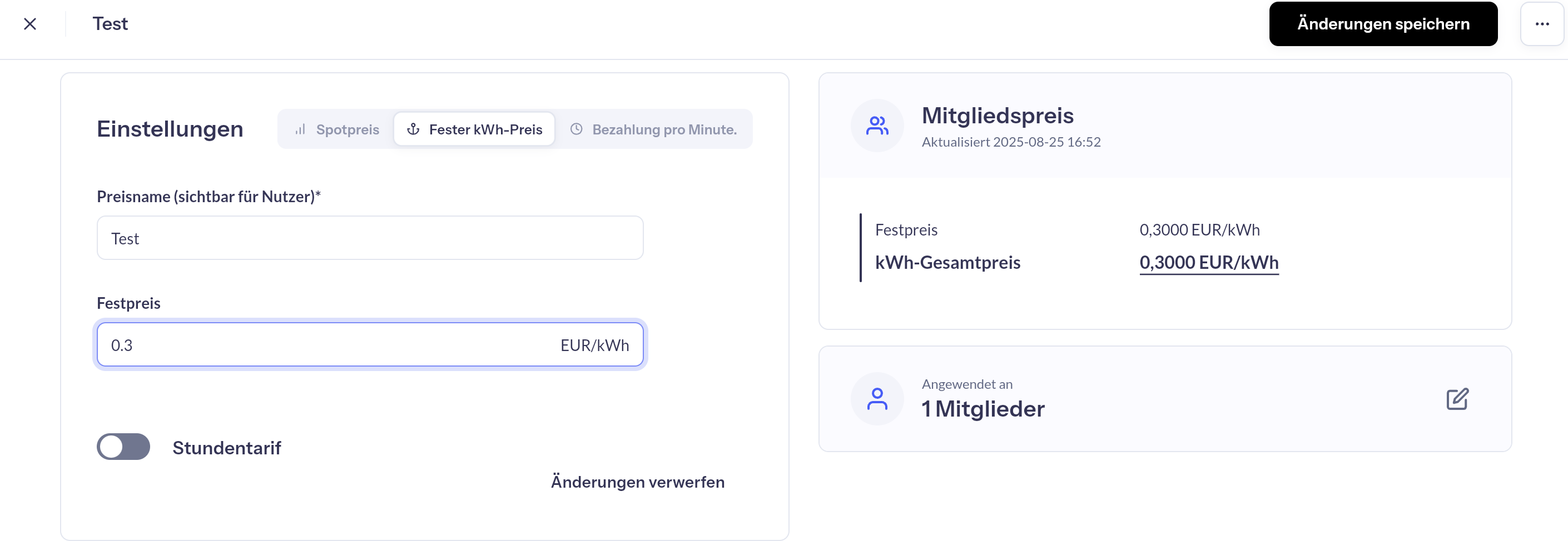- Passe den Ladetarif (meist als Festpreis) entsprechend an (Achtung: Punkt statt Komma eintragen):
